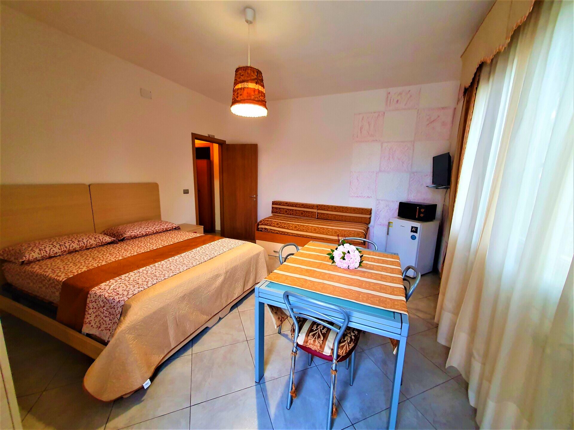 Camera dotata di tutti i comfort necessari con ingresso indipendente, cortile condiviso, letto matrimoniale, letto a scomparsa, forno a microonde, bagno privato con doccia.